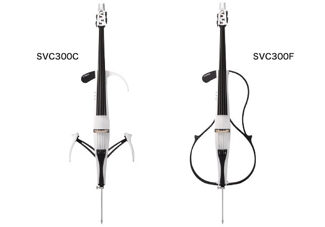 今回の「SVC300シリーズ」のラインアップは、ステージ映えするシャープなデザインとエッジの効いた音色を持つ「SVC300C」と、アコースティックチェロのシルエットをイメージさせるフォルムと温かな音色が特徴の「SVC300F」の2種類。前者はロックやポップスの現場で本領を発揮し、後者はクラシック音楽の奏者が容易に持ち替えられるようにデザインされている。